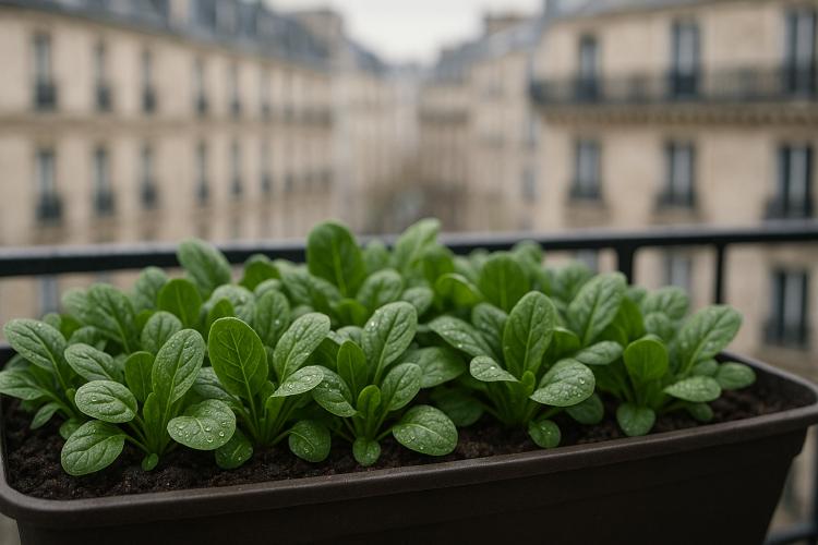 Tout pour semer des epinards sur balcon à mi-ombre : contenants, substrat drainant, semis de fin d’hiver, arrosage par capillarité, protection et récolte continue.